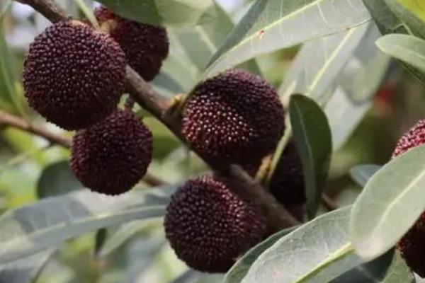 晚稻杨梅原产自浙江舟山,呈现圆形或圆筒形,叶片为披针形,果实在7月份成熟,呈现圆球形,其口感微酸偏甜,营养价值较高。