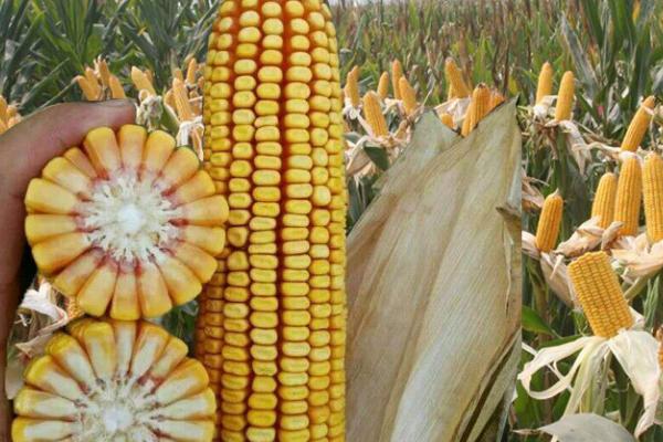 4、果穗筒型,穗长21.2厘米,穗行数16~18行,穗轴红色,籽粒黄色、马齿型,百粒重42.4克。