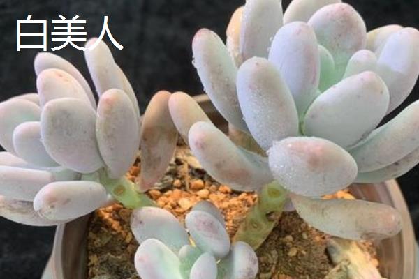 (2)白美人主要是由于它的独特外形而得名,因为叶片肉肉的很圆润且上面附着有一层白粉,故而得名白美人。
